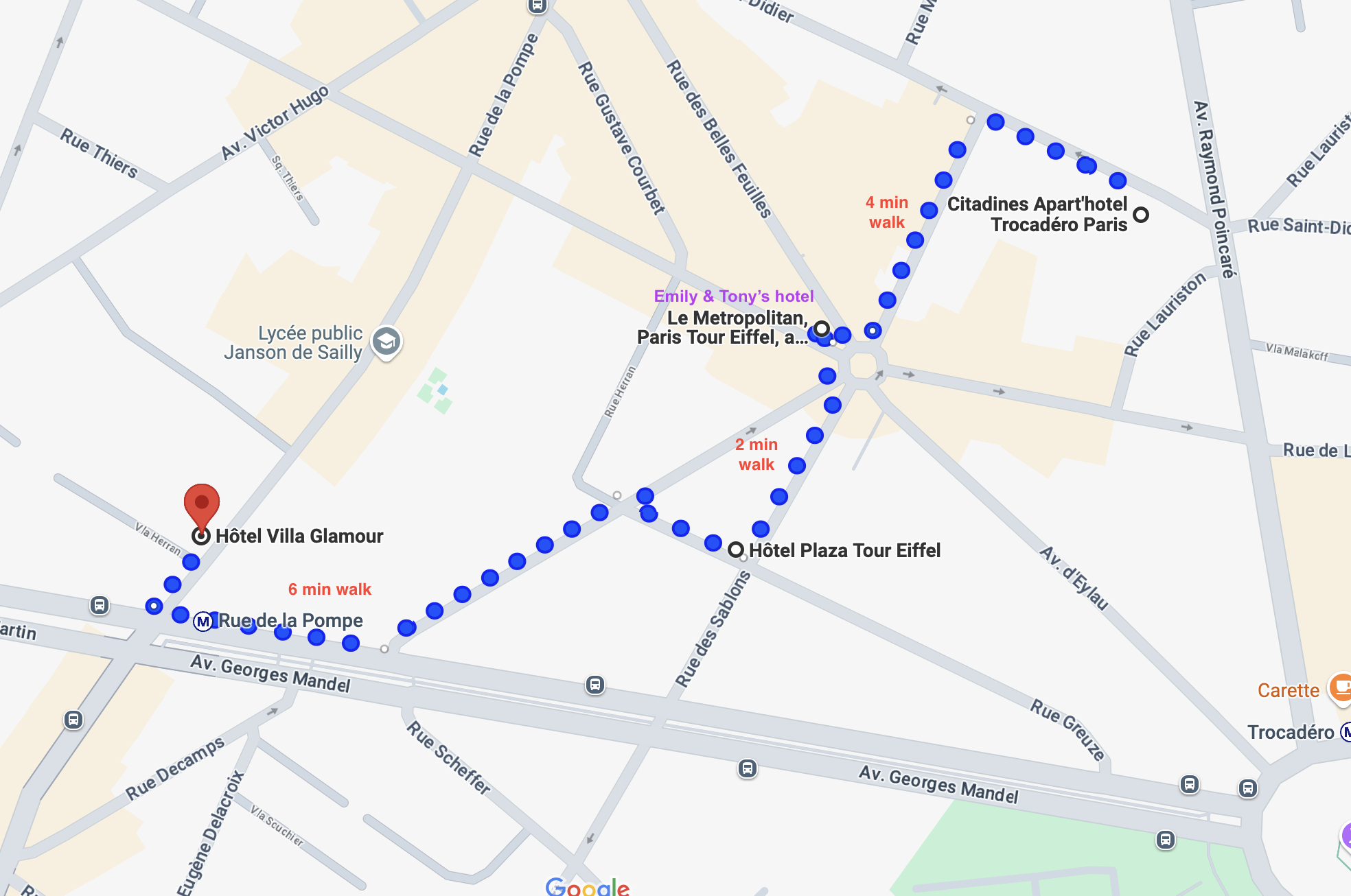 Please see hotel options below. Every hotel is a 3-5 min walk from one another. If you would prefer to stay at another hotel or book an AirBnb no problem, please note that the Wedding Day shuttle service will pick up and drop off at (Le Metropolitan, Paris Tour Eiffel, a Tribute Portfolio Hotel) - Marriott